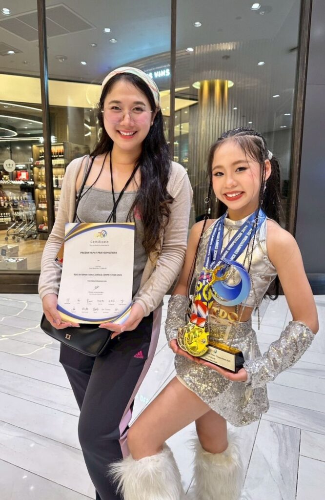 อีกทั้งทางโรงเรียนยังมี งานแสดง งานโฆษนา หรืองานที่ต้องการโชว์ความน่ารักของเด็กๆ อีกเยอะมาก งานที่รีเควสขอน้องๆ ตั้งแต่วัย 4-10 ขวบ การที่เราได้ฝึกมีความสามารถ เวลาโชว์ ยิ่งถ้าเป็นเด็ก จะได้รับความสนใจมาก และในยุคแห่งการทำคอนเทนต์นี้ การเต้นเป็นกระแสที่มาแรง การเล่น Dance challenge ตามแพลตฟอร์มต่างๆ แล้วโด่งดังสร้างตัวตนมาจากการเต้น ยังสามารถเพิ่มผู้ให้มีคนมาติดตามและต่อยอดได้ สร้างโปรไฟล์ได้ โดยทางโรงเรียนเรา สนับสนุนและรู้ช่องทางในการโปรโมท สามารถซัพพอร์ทน้องๆได้อย่างเต็มที่ นอกเหนือจากงานที่ทางโรงเรียนสร้างโอกาสให้น้องๆ ได้ การเต้นของเด็กๆ ยังสามารถไปแสดงโชว์ความสามารถที่โรงเรียนได้อีกด้วย